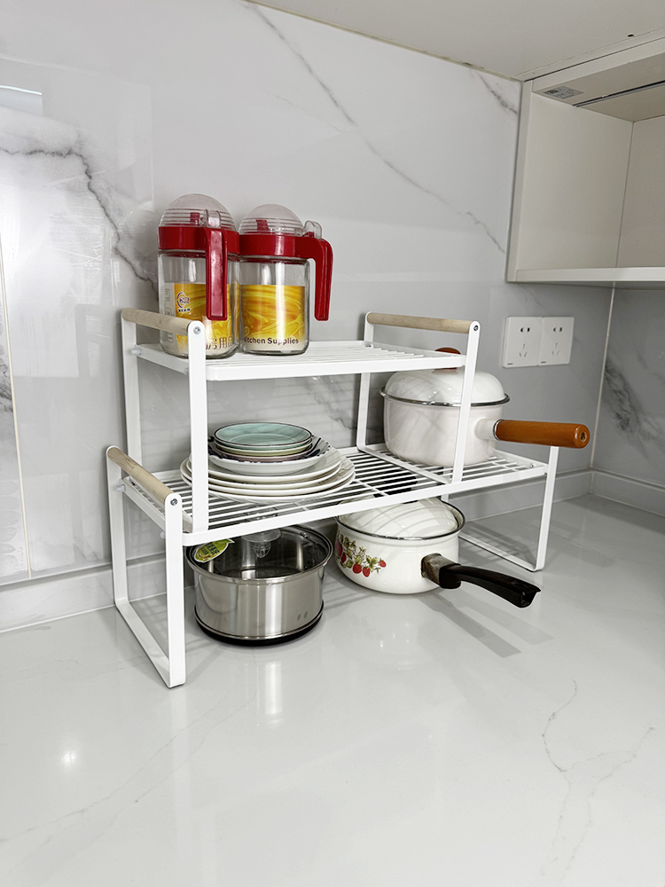 木手柄雙層抽拉式置物架