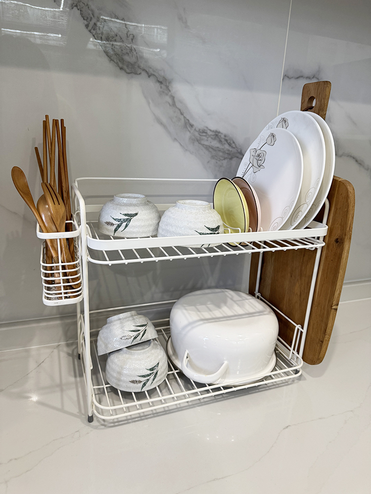 雙層碗碟架帶筷子籠砧板架