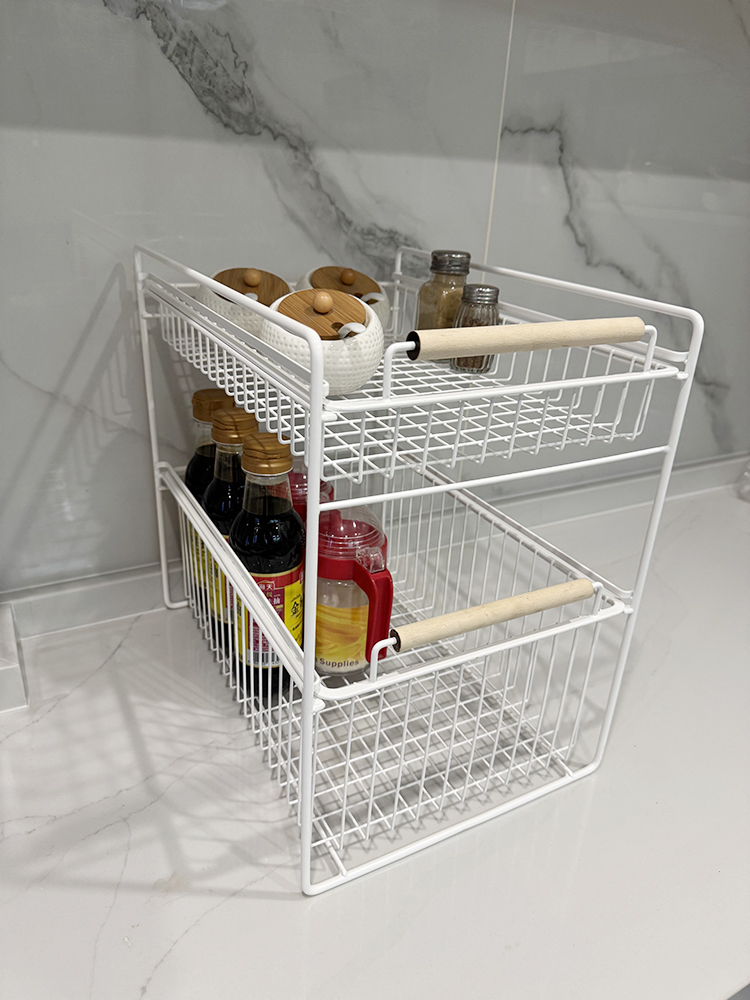 木手柄雙層抽拉式置物架