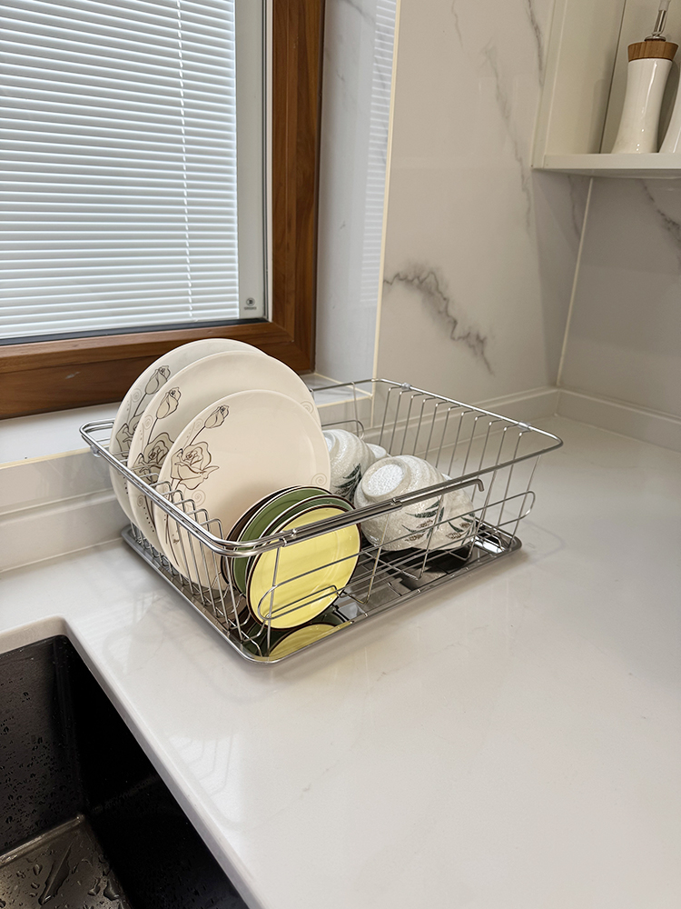 不銹鋼可伸縮單層碗碟架
